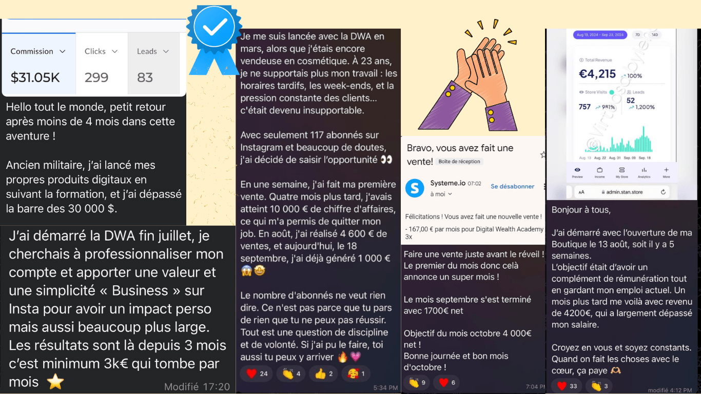 AprĂšs plusieurs essais et Ă©checs, jâai dĂ©couvert le monde du marketing digital grĂące aux tĂ©moignages et conseils dâune jeune femme dont lâhistoire mâa inspirĂ©e.